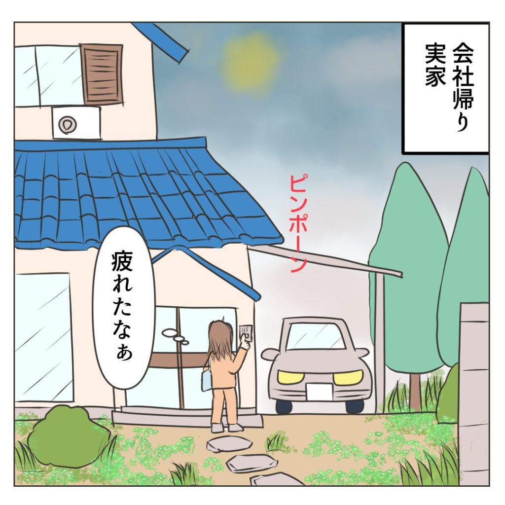 仕事帰りに実家に寄っていくミミ。