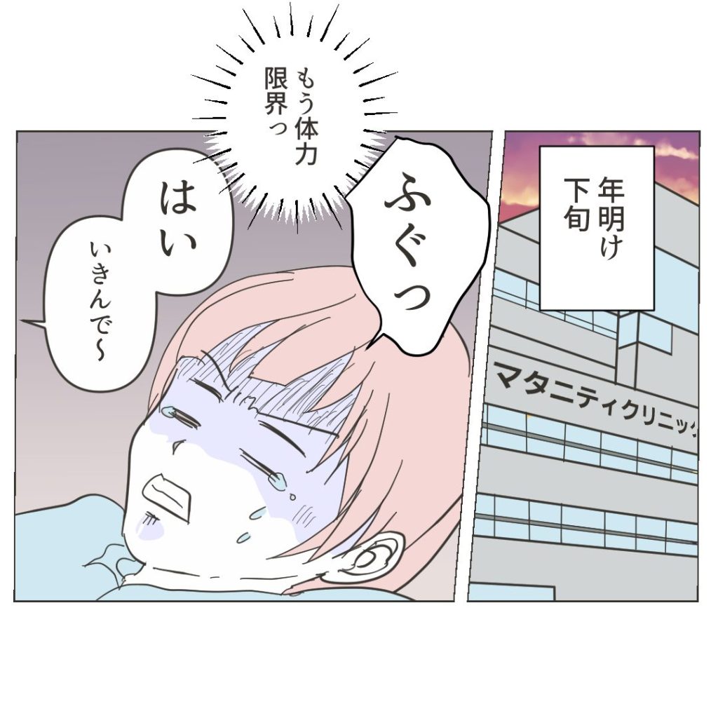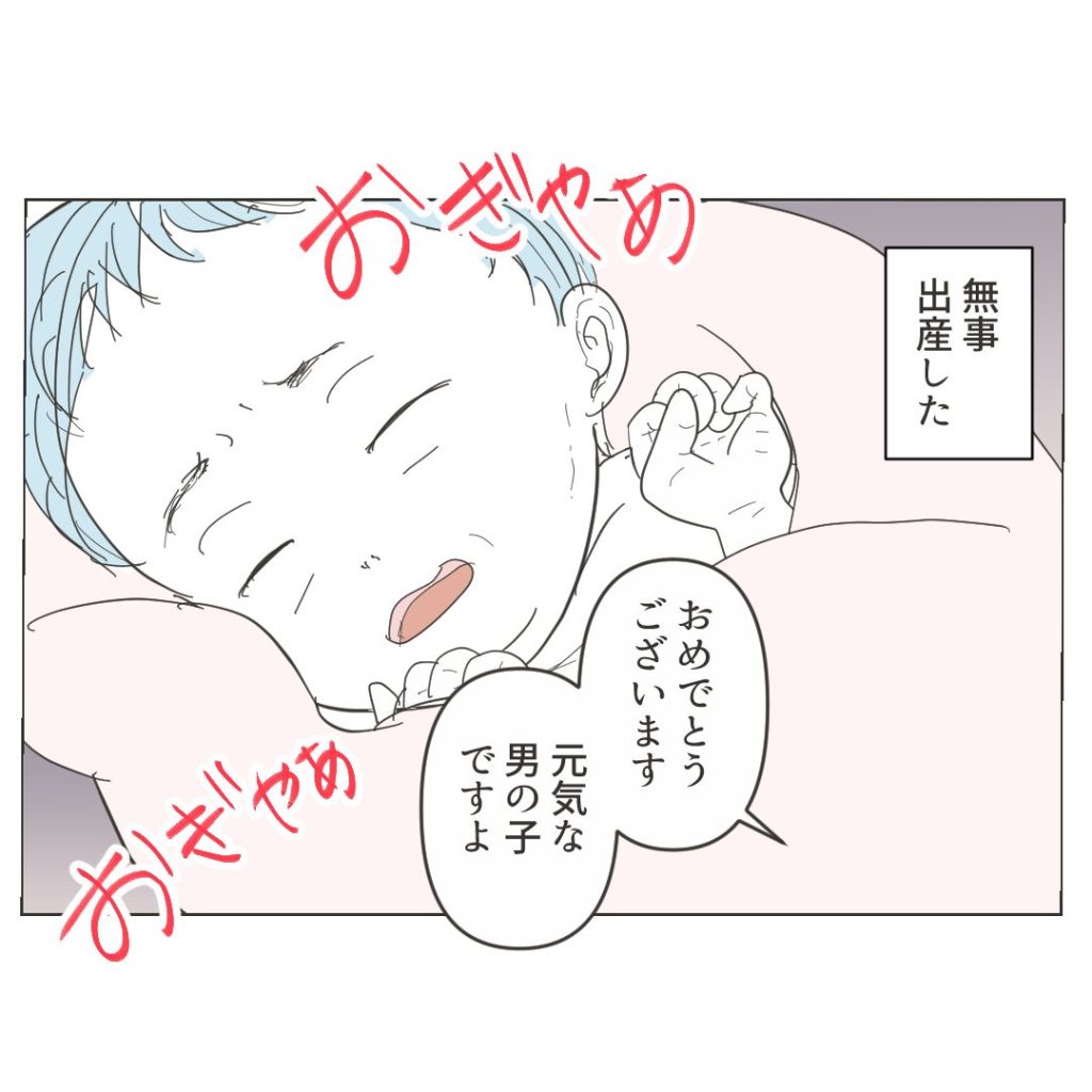 出産レポじゃないのでエピソードとしては描いてないんですが、朝から夕方までずっと陣痛は等間隔であるのに弱くて、なかなか生まれない。