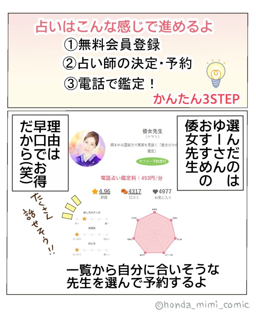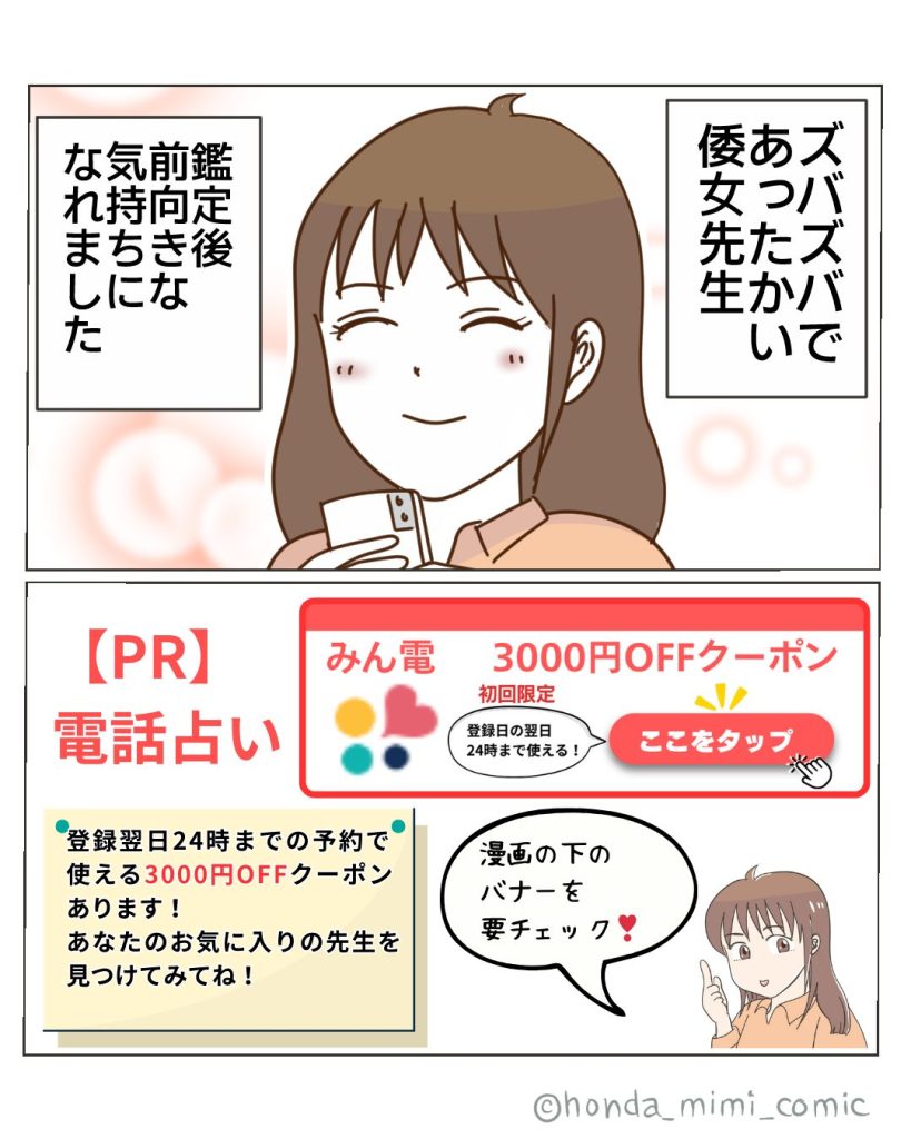 今回は特別に「電話占い・みん電」さんとのタイアップで描いた漫画を公開します📖✨